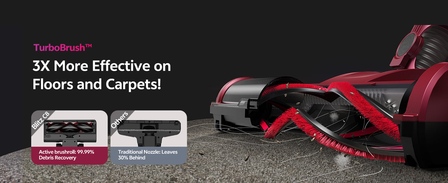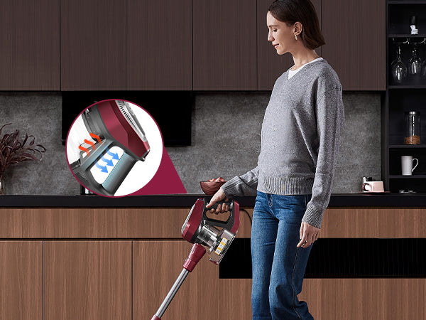 The C8 corded vacuum cleaner is equipped with an extra-long 7-metre power cord, allowing you to clean the entire room, from the living room to the bedroom, with a single power source.